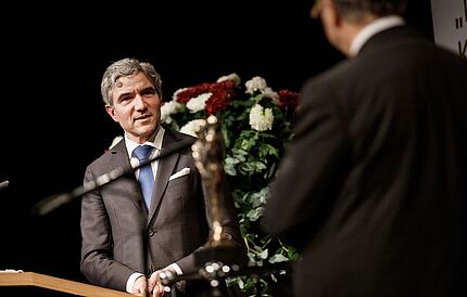 „Weniges ist schlimmer als die Beliebigkeit der haltlosen Welt, denn der Weg von der Anomie zur Tyrannei ist kurz. Wir brauchen die lebhafte Bemühung um gemeinsame Werteüberzeugungen, auch im 21. Jahrhundert. Das heißt vor allem, wir brauchen diejenigen, die sich die Mühe machen, die öffentliche Diskussion um solche Werteüberzeugungen in Gang zu halten. Dazu jährlich Anlass zu geben ist der Verdienst der Karlsruher Akademie für Zahnärztliche Fortbildung. Wir schulden ihr Dank.“