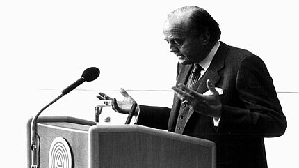 „Es wird also gut sein, wenn die Verantwortlichen für das Leben der Völker keine Exklusivwahl zwischen Geschichte und Prophetie treffen. Während sie die Füße fest auf dem Boden der Geschichte haben, wird der prophetische Hauch, der aus einer umfassenden Sicht der Menschheit und ihrer Geschichte herstammt, ihrem Tun eine Vornehmheit und schließlich eine Zustimmung zur tiefsten Wirklichkeit des Menschen verleihen, die die Lektionen der Geschichte allein kaum gewährleisten können. Dieses ist zugleich ein Wunsch: Für die Staatsmänner und für die Welt!“