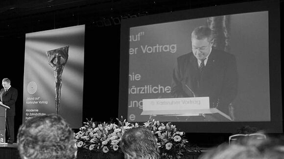 Auch „Mitglieder der Karlsruher Konferenz“ werden 1986 zum ersten Mal gekürt. Kolleginnen und Kollegen, die sich in besonderer Weise um ihre Fortbildung kümmern, erhalten diese Auszeichnung. Mit dabei: Dr. Rüdiger Engel, der spätere Präsident der Landeszahnärztekammer Baden-Württemberg.