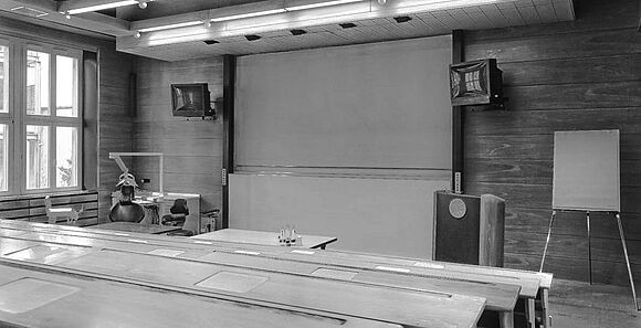 Nur Hörsaal 1 muss noch 4 Jahre auf seine Renovierung warten. Ab 1985 ist er der schönste Hörsaal der Akademie.