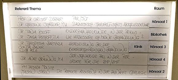 Die Tafel im Treppenhaus zeigt die letzten Kurse an, die in der Sophienstraße 39a stattfinden.