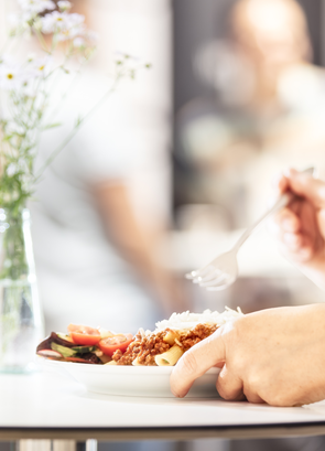 Beim Mittagessen setzen wir auf abwechslungsreiche, vegetarische und gesunde Gerichte und arbeiten mit unserem langjährigen Partner aus Karlsruhe zusammen.