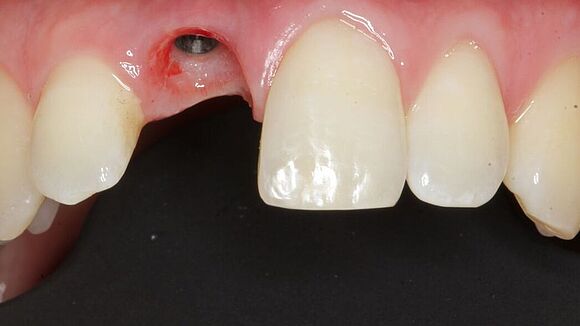 Zahnärztliche Implantate sind bei fast jedem Patienten möglich. Auch alte Menschen können ohne Probleme mit ihnen versorgt werden. Der Aufwand für eine entsprechende Versorgung unterscheidet sich von Fall zu Fall stark Er ist davon abhängig, wie viele Zähne ersetzt werden müssen, ob genügend Knochen vorhanden ist oder ob das Implantatbett durch spezielle Maßnahmen vorbereitert werden muss. Damit Sie erfahren wie es in Ihrem Fall steht, erhalten Sie in der Akademie immer ein sehr ausführliches Aufklärungsgespräch. Bei unserem Beispielpatienten war es möglich, das Implantat sofort zu belasten und ihn mit einer provisorischen Krone zu versorgen. Die Zahnlücke – die hier zu sehen ist – war also sofort nach dem Einsetzen des Implantates verschwunden.
