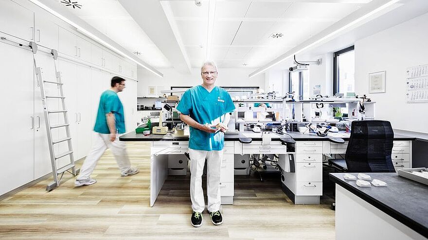 Das Labor arbeitet Hand in Hand mit den Zahnärztinnen und Zahnärzten der Poliklinik. Die Techniker lernen die Patienten kennen und sprechen mit ihnen über Wünsche und Besonderheiten. Jeder Auftrag wird individuell von einem/r Zahntechniker/in durchgeführt, der/die für Sie als Patient verantwortlich ist.