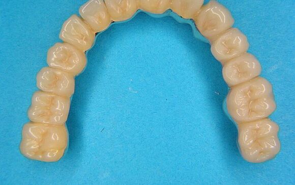 Bei größeren Brücken sollte die Keramik durch ein stabiles Gerüstmaterial unterstützt werden. Hierfür eignen sich, neben Gold- auch Chrom-Kobalt-Legierungen, die hervorragende mechanische Eigenschaften und gute Mundverträglichkeit aufzuweisen haben.